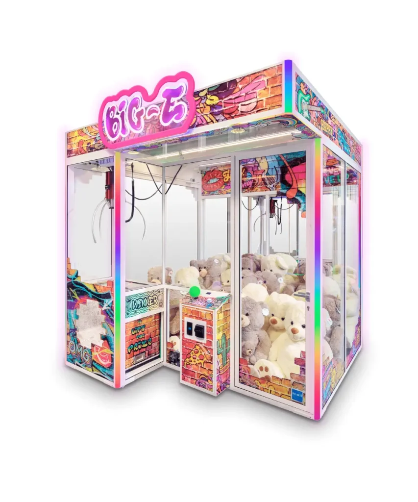 Big E este un aparat arcade premium Elaut, conceput pentru o experiență “immersive” și expunerea plușurilor mari. Designul 360° din sticlă îl face ideal ca piesă centrală în orice sală de jocuri, oferind vizibilitate maximă și durabilitate superioară.